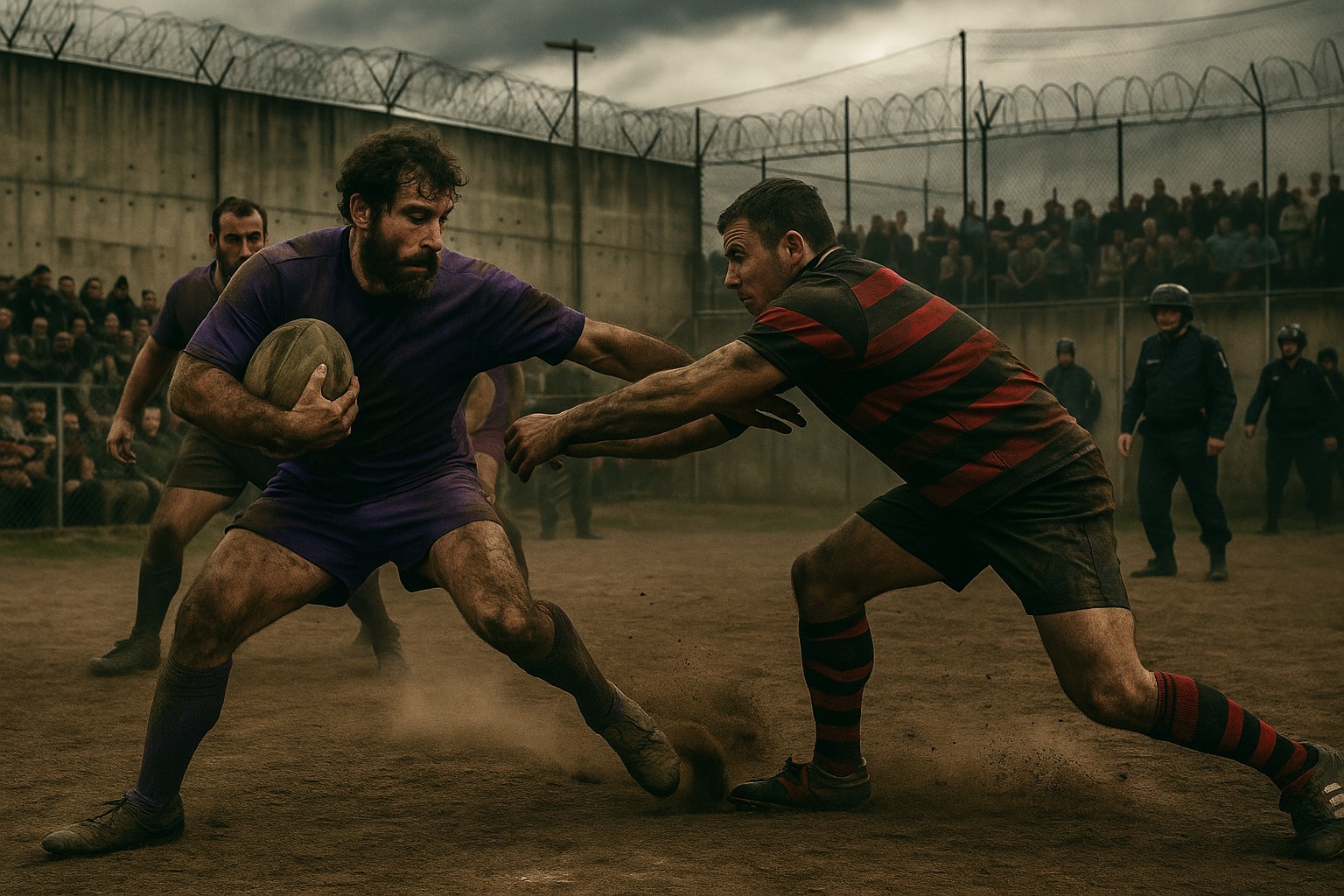 Come nei polverosi scenari di Giochi di Morte, gli ARF sono giunti in processione tra check-point, tornelli, controlli multipli, porte che si aprono solo se quelle alle spalle si richiudono con tonfi secchi. Uomini liberi in terra di reclusione, armati non di catene ma di spirito rugbistico. Ad attenderli: le Pecore Nere, squadra tosta e affiatata, che nel campo di casa ha forgiato gioco e carattere. Nessun volto da temere, solo avversari leali e intensi. Ma l’atmosfera era da arena post-apocalittica. Il match non sarebbe stato semplice.