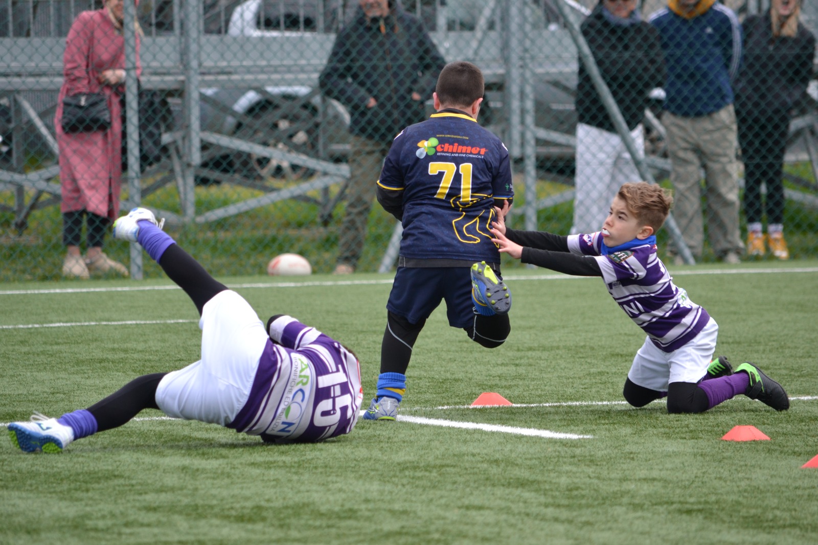 La mattinata grigia e ventosa non ha minimamente intaccato l’energia dei piccoli Sabotatori, che hanno affrontato ogni partita con il solito spirito combattivo e tanta voglia di divertirsi. Molte mete, tanti placcaggi e anche qualche dentino perso!